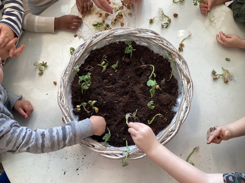 De peuters planten zaadjes en bomen. 🌱🌸