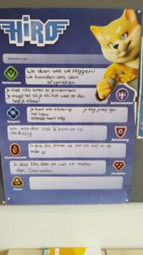 Ook in groep 6 zijn we begonnen met de nieuwe methode HiRO. HiRO is een sociaal emotionele methode, waarbij kinderen leren om een goed mens te zijn. De volgende waarden staan hierbij centraal: vertrouwen, samenwerken, respect, beheersing, discipline, weerbaarheid en plezier. We hebben geleerd hoe we een conflict kunnen oplossen en we hebben gewerkt aan groepsverbindende activiteiten. Deze week werken we aan wat zijn je kwaliteiten en wat kun je eraan doen om je zelfvertrouwen te vergroten. π₯π«