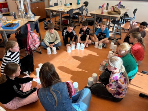 In de groepen 6 wordt iedere week hard geoefend aan een muziekstuk voor een voorstelling. De groepen zijn opgedeeld in drie groepen. EΓ©n groep speelt gitaar, één groep speelt keyboard en één groep doet percussie. Vandaag gingen de groepen voor het eerst samen oefenen. Wat een feest! πΉπΈπͺ