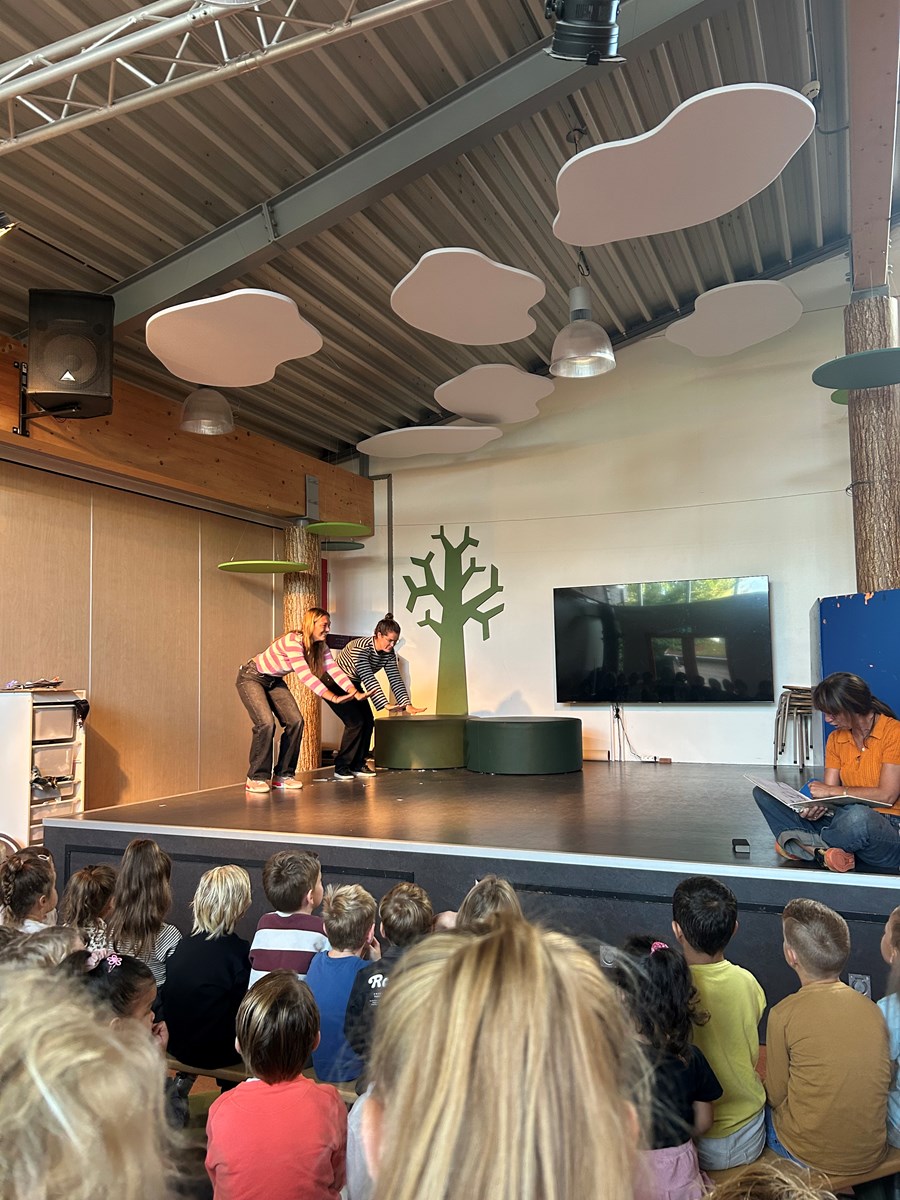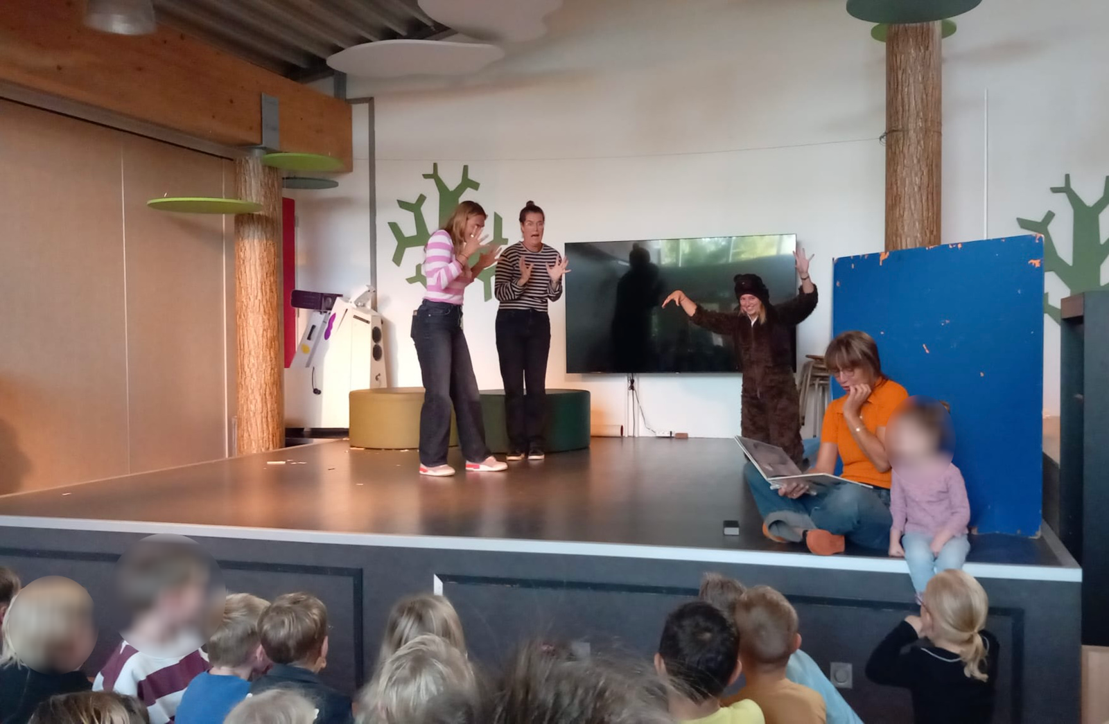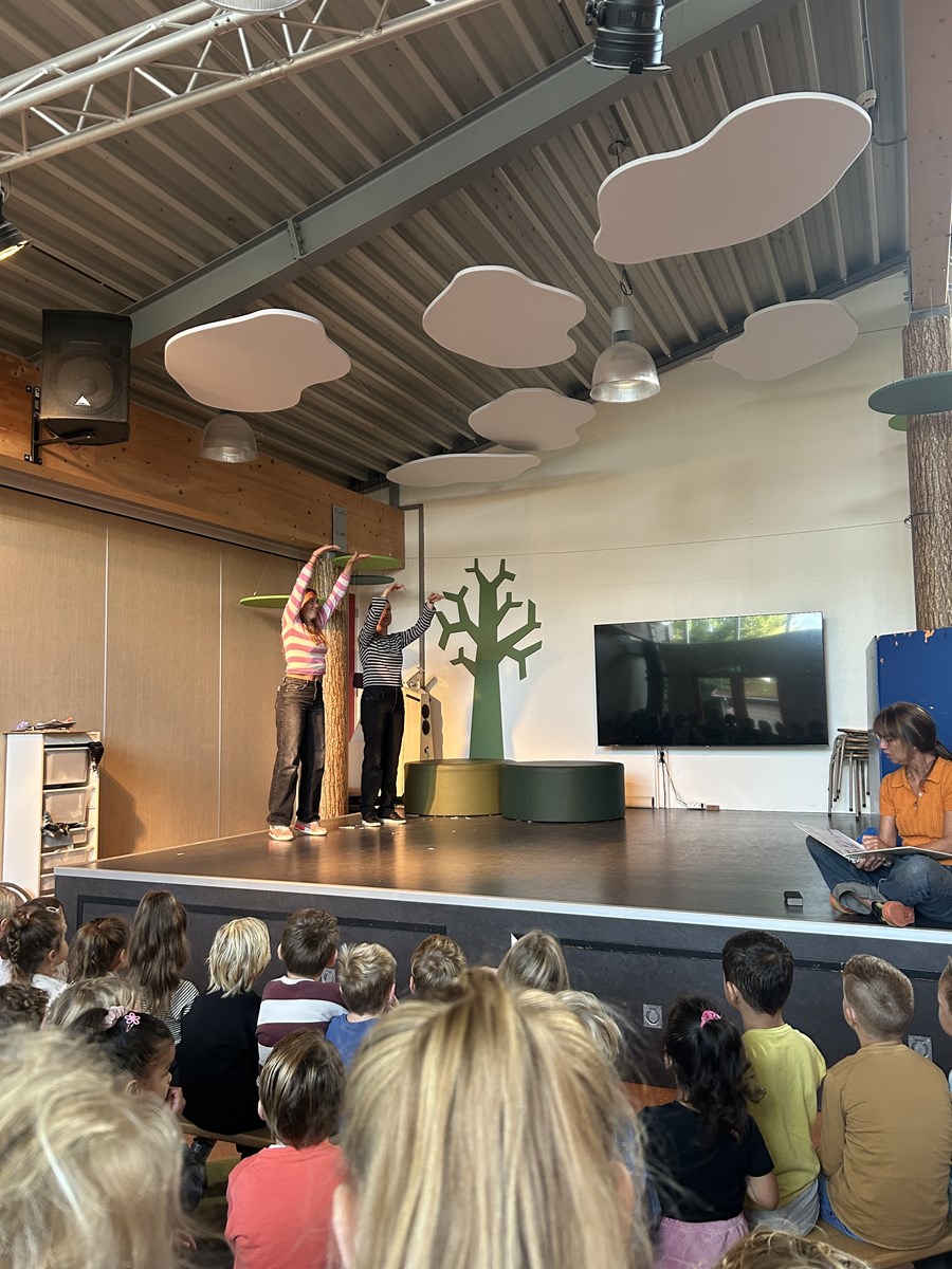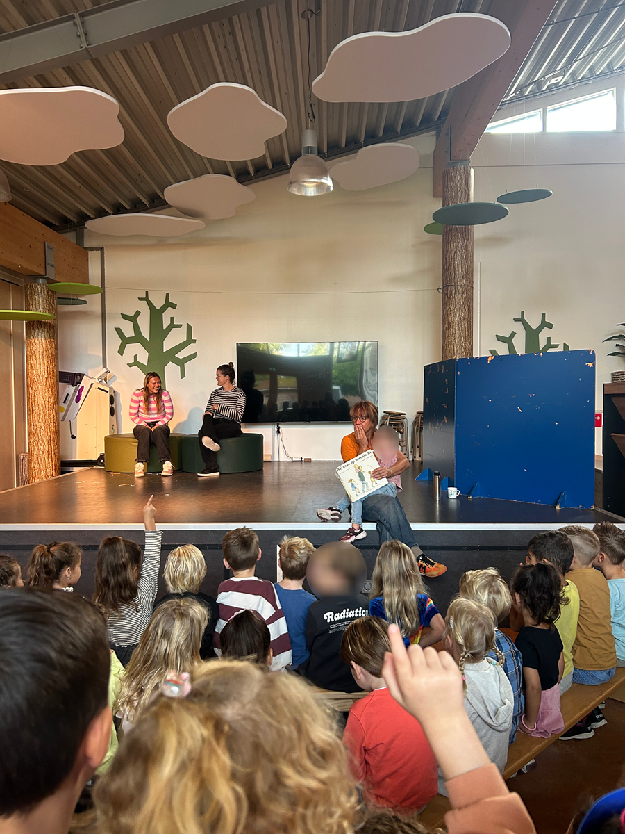 Vandaag zijn we het nieuwe thema gestart bij de kleuters. De leerkrachten speelden het verhaal “Wij gaan op berenjacht”na! 🌳🌊🌾