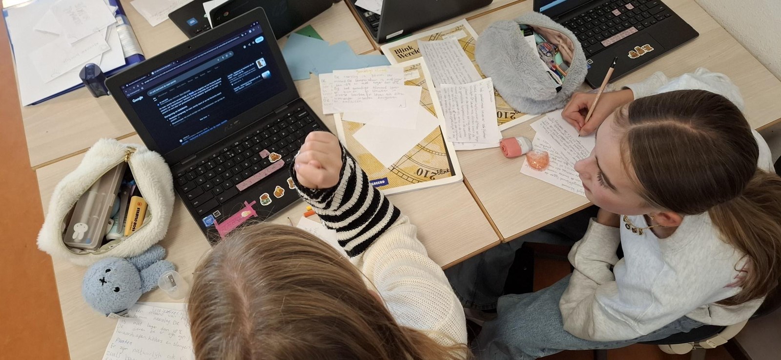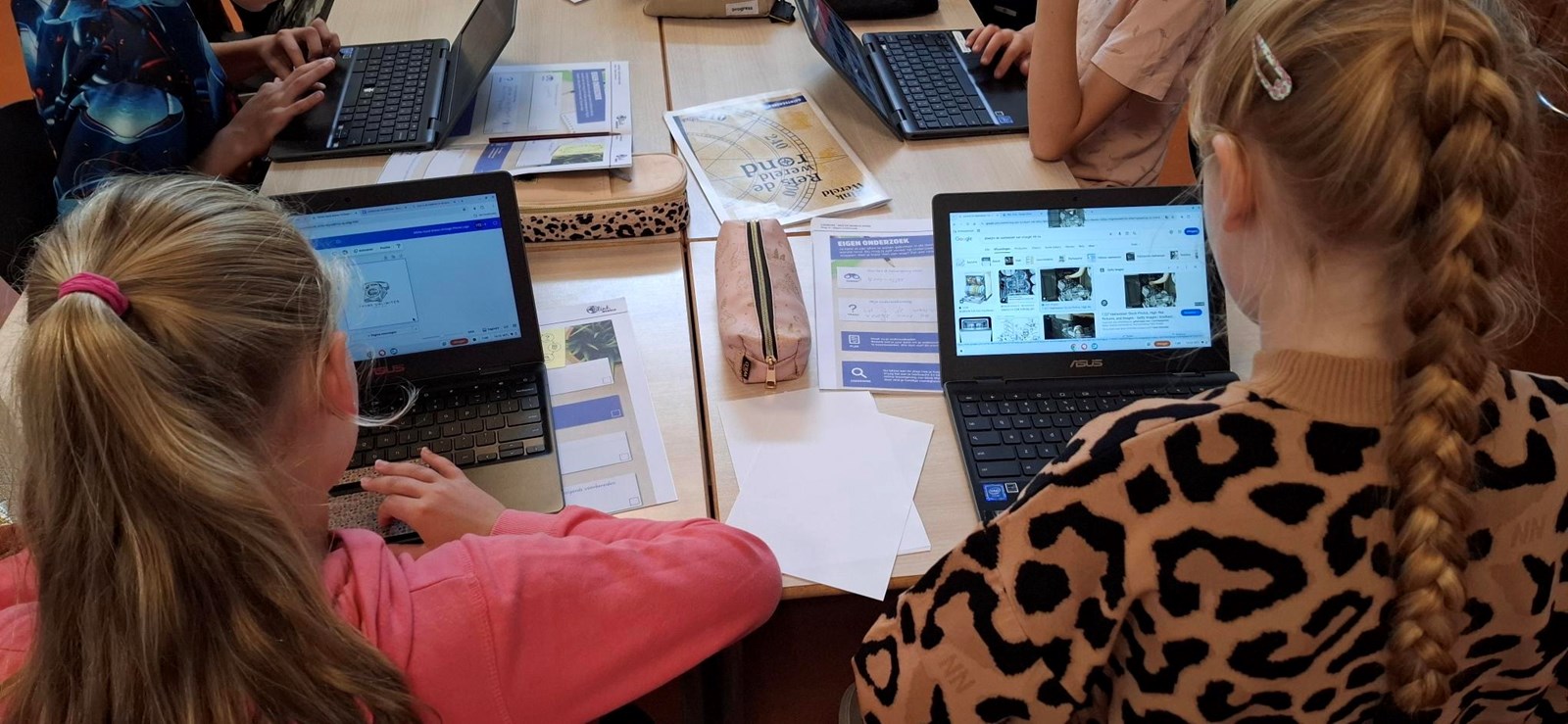 De groepen 7 werken aan hun eigen onderzoek naar stoere vrouwen, grote uitvindingen, ontdekkingsreizigers en klimaten. 🌎