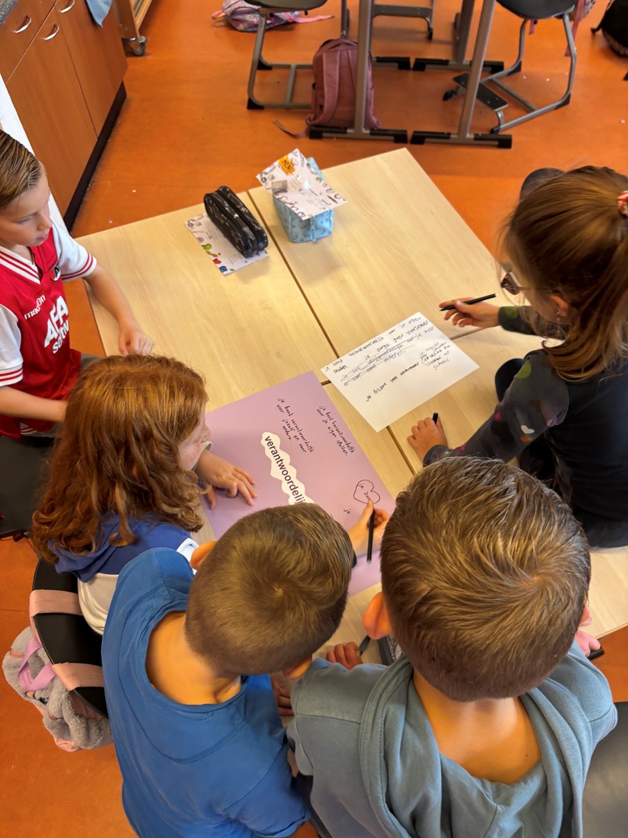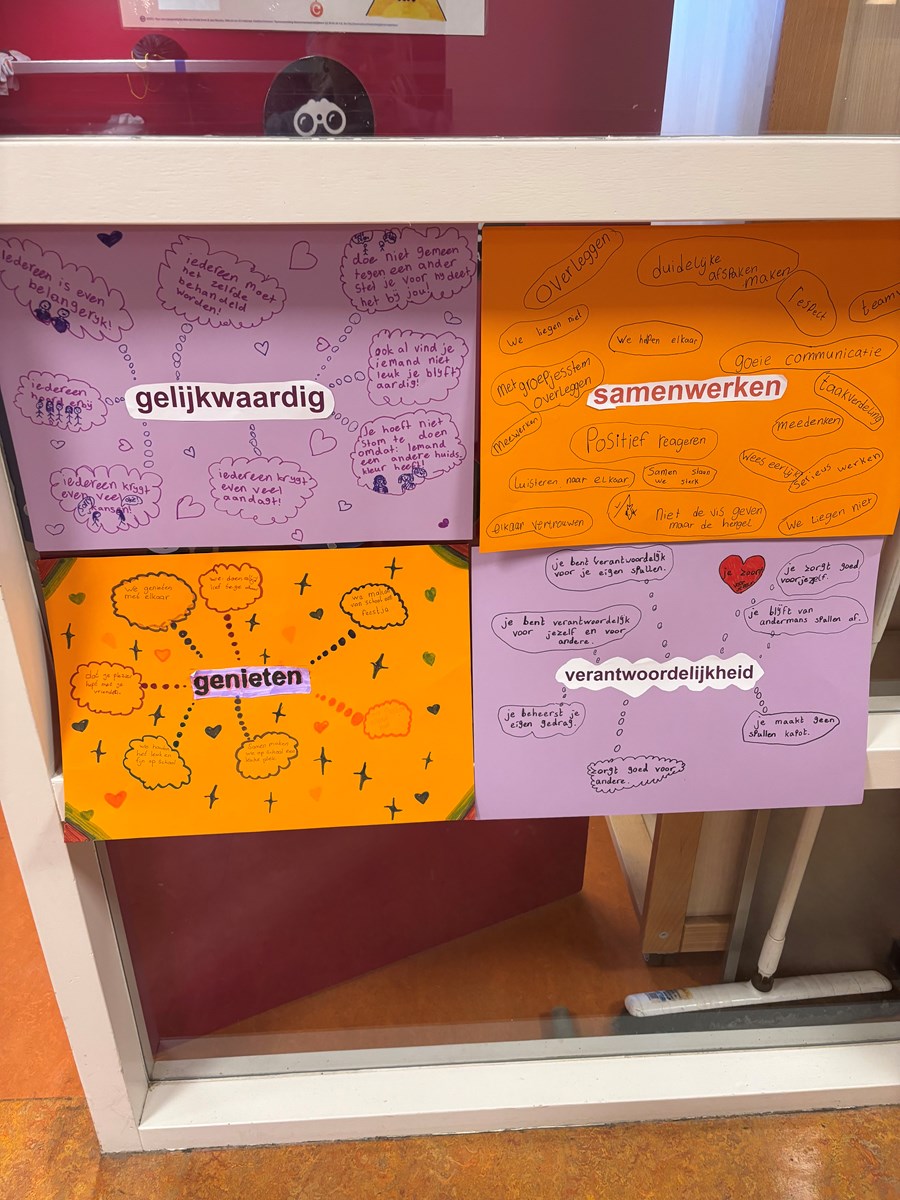 Op de Familieschool staan er vier kernwaarden centraal. Samenwerken, gelijkwaardigheid, genieten en verantwoordelijkheid. Maar wat hoort er eigenlijk allemaal bij die kernwaarden. In de groepen 6 (maar ook in de andere groepen) dachten we daar over na, maakte een muurkrant en deze hangen door de hele school! 🏫📚