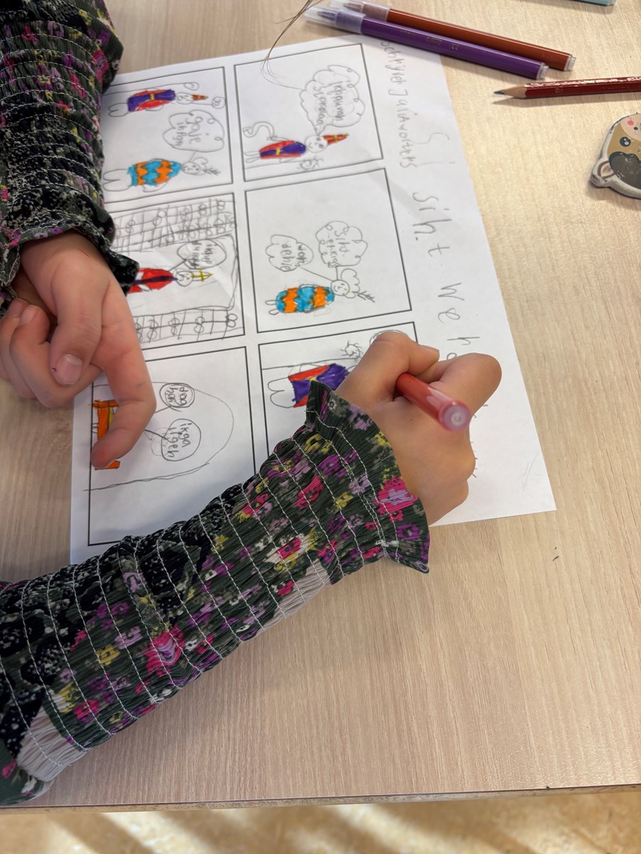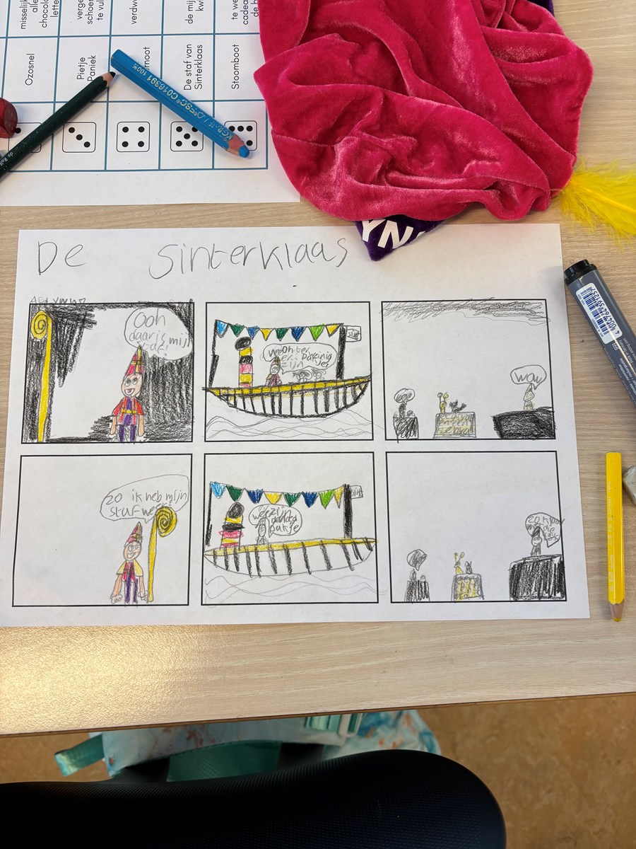 Hierna hebben we of een strip of een verhaal geschreven. We maken er een mooi boek van voor Sinterklaas. 🎬✍🏻✨