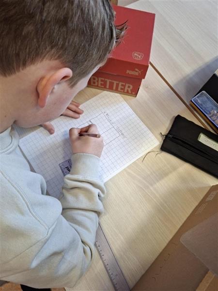 We starten met het maken van de plattegrond waarbij meten heel belangrijk is. 🏠📏