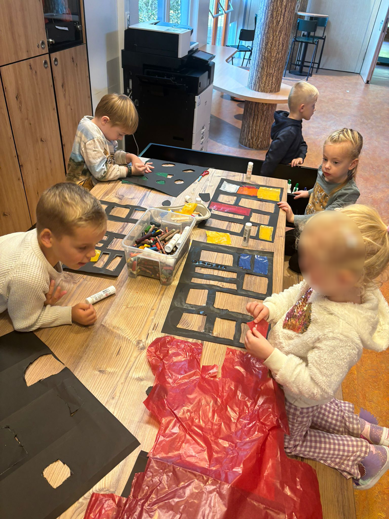 De kleuters zijn druk bezig met hun lampionnen binnen het thema Kunst. Ze creรซren prachtige sterrennachten en zonnebloemen van Vincent van Gogh, vrolijke poppetjes geรฏnspireerd door Keith Haring, stippen in de stijl van Kandinsky en de primaire kleuren van Piet Mondriaan.
