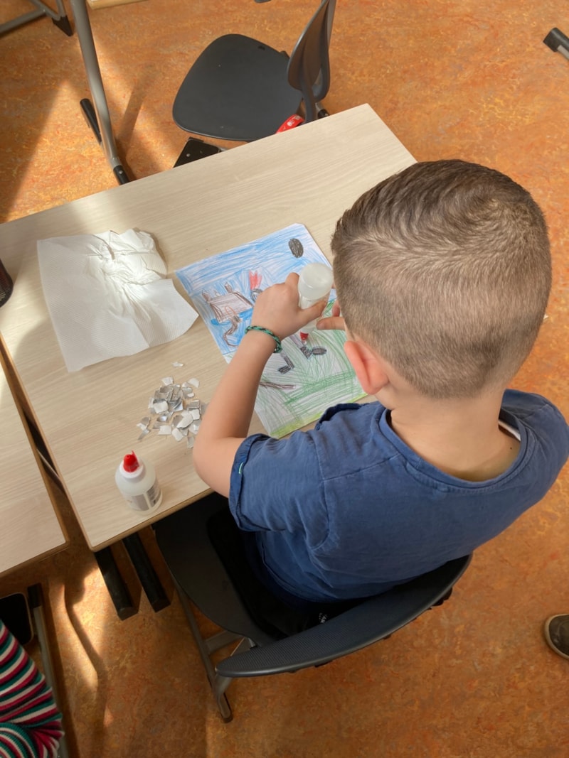 We maakten een stoere ridder π° waarbij het harnas werd versierd met kleine stukjes zilverpapier. Eerst hebben de kinderen…